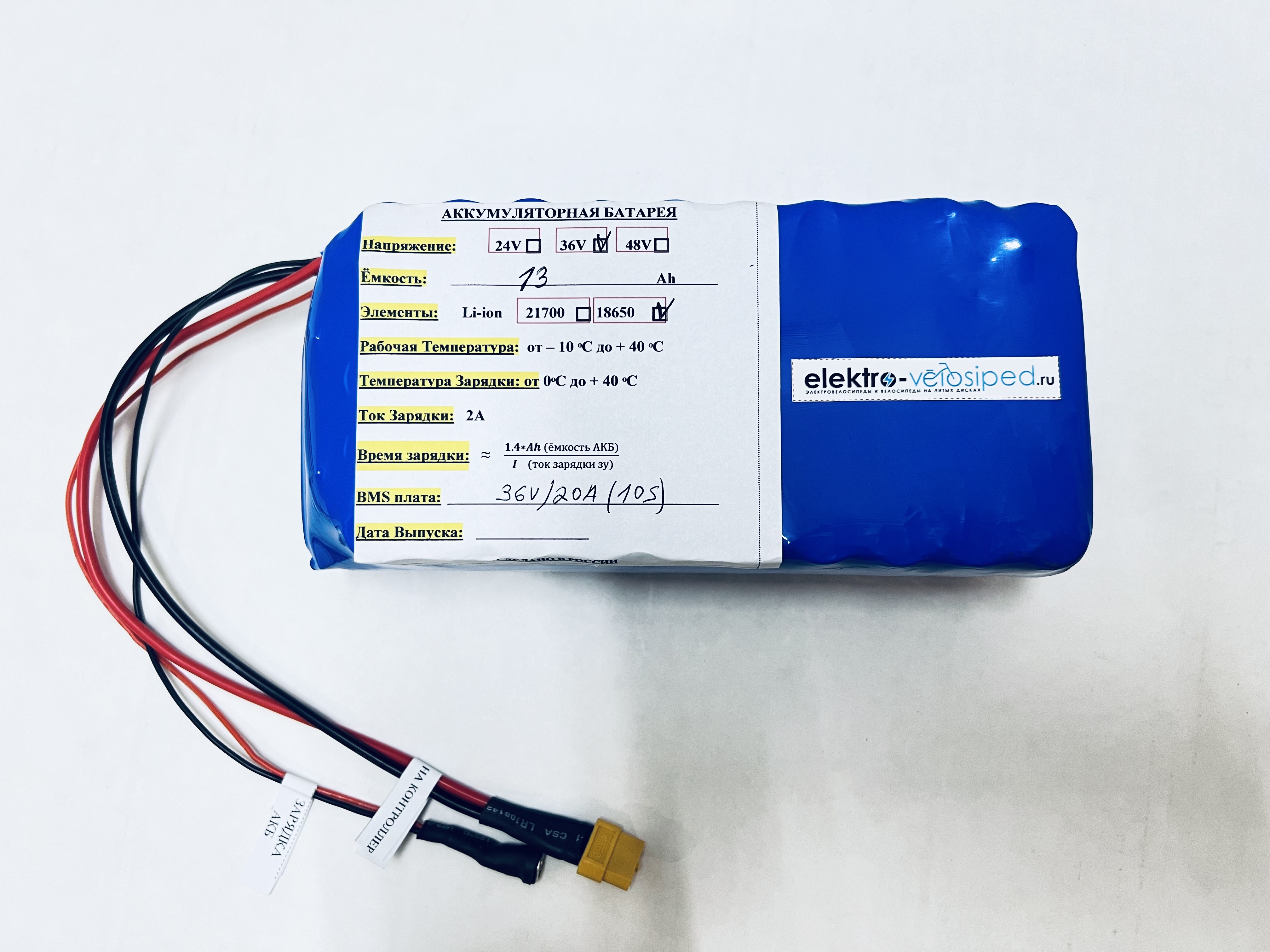 Аккумулятор 18650 литий ионный 36 вольт /13 Ампер-час XT-60 для электровелосипеда
