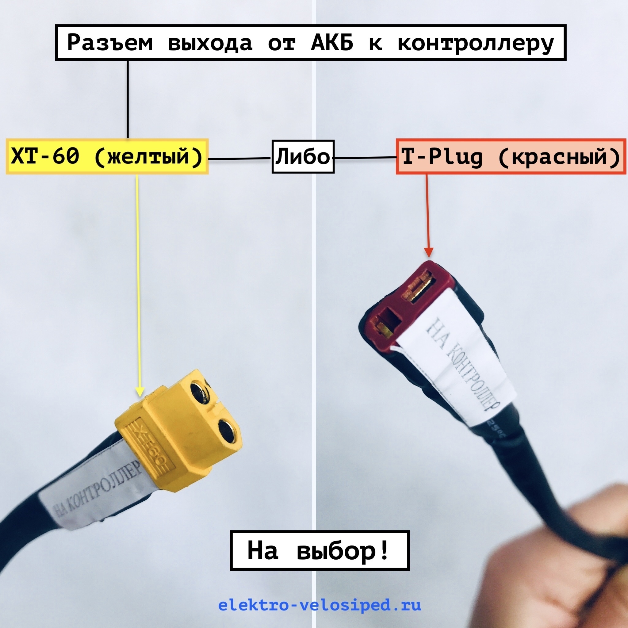 - Разъем выхода на контроллер: T-Plug (красный) либо XT-60 (желтый) - На Ваш выбор! См. фото-3.