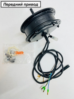 - Задний Мотор идет под трещетку. Устанавливается на задний привод велосипеда и имеет расстояние между дропаутами рамы в 135мм. Он рассчитан на максимальную скорость 45-50 км/час в зависимости от напряжения, диаметра обода и нагрузки. Имеется крепление под дисковый тормоз.