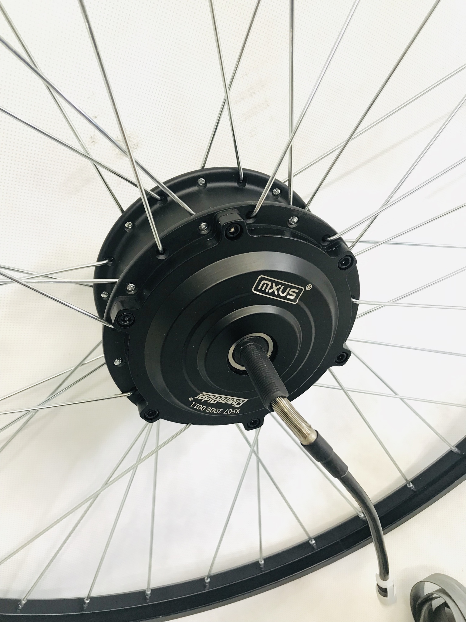 Мотор-колесо MXUS редукторного типа (не тормозит движение при езде как на обычном велосипеде)