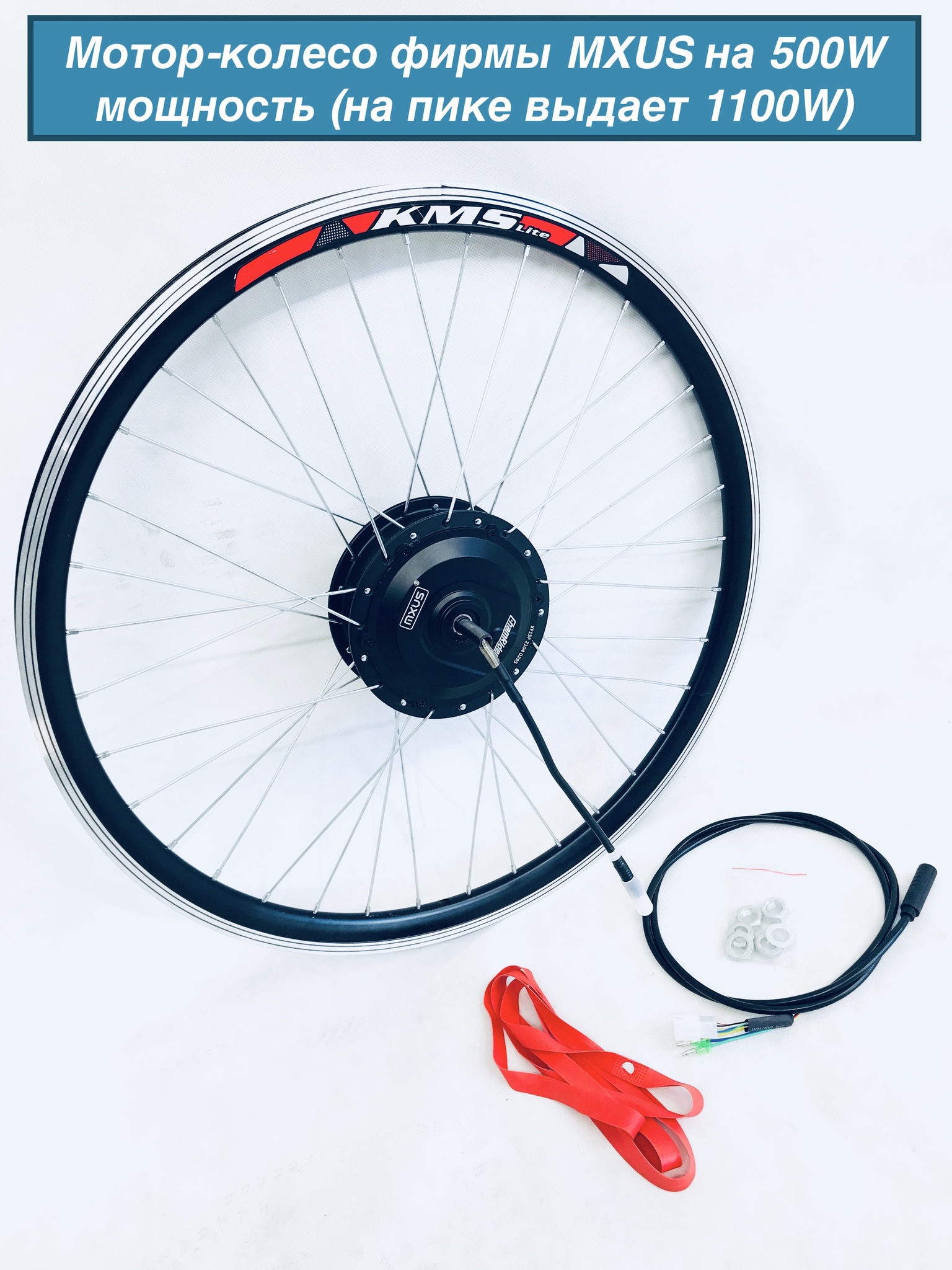 1. Редукторное мотор-колесо фирмы "MXUS" Мощность 500 Ватт (На пике выдает 1100W) - готовое, заспицованное - с усиленными спицами, с двойным/усиленным ободом. Под дисковый + ободной тормоз; С быстросъемным кабелем!