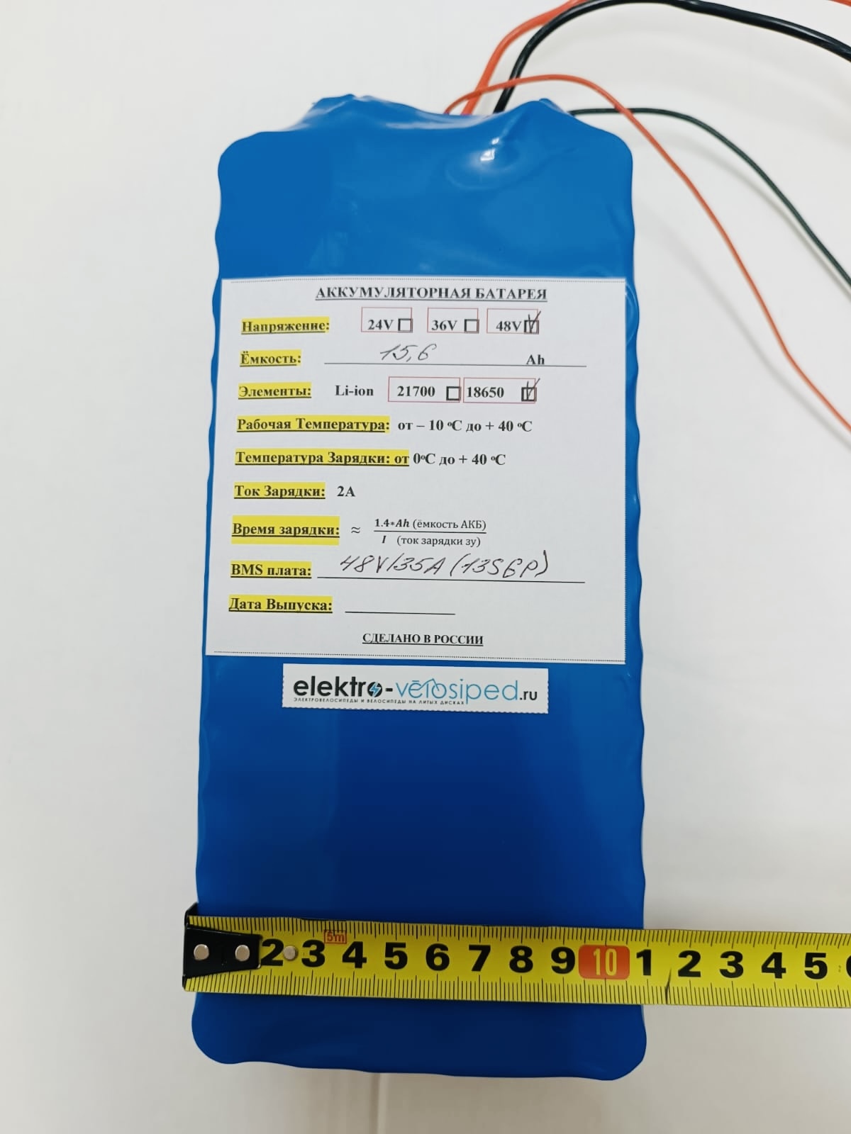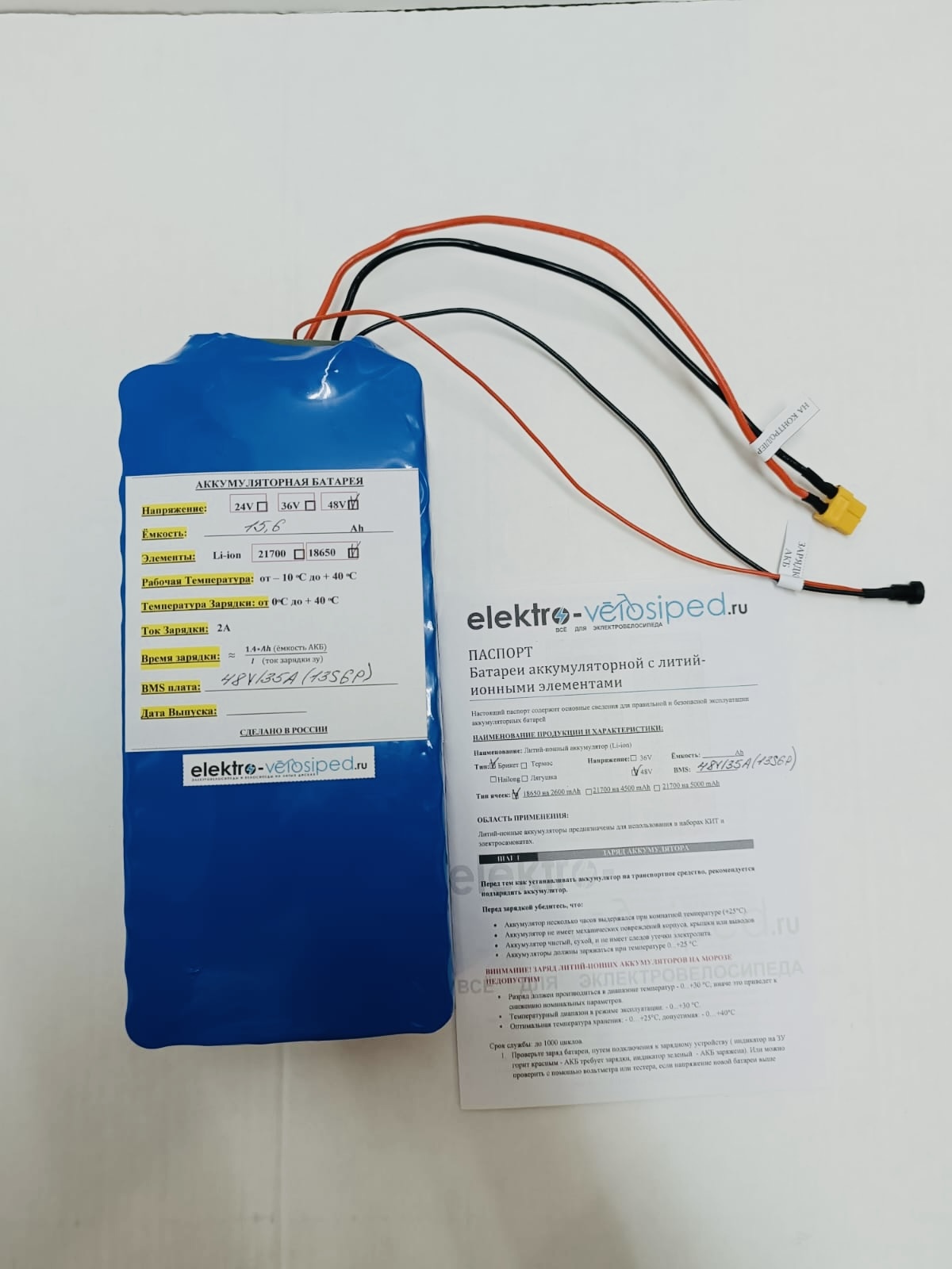 Литий-ионная аккумуляторная батарей 48V/15,6 Ah для электровелосипеда
