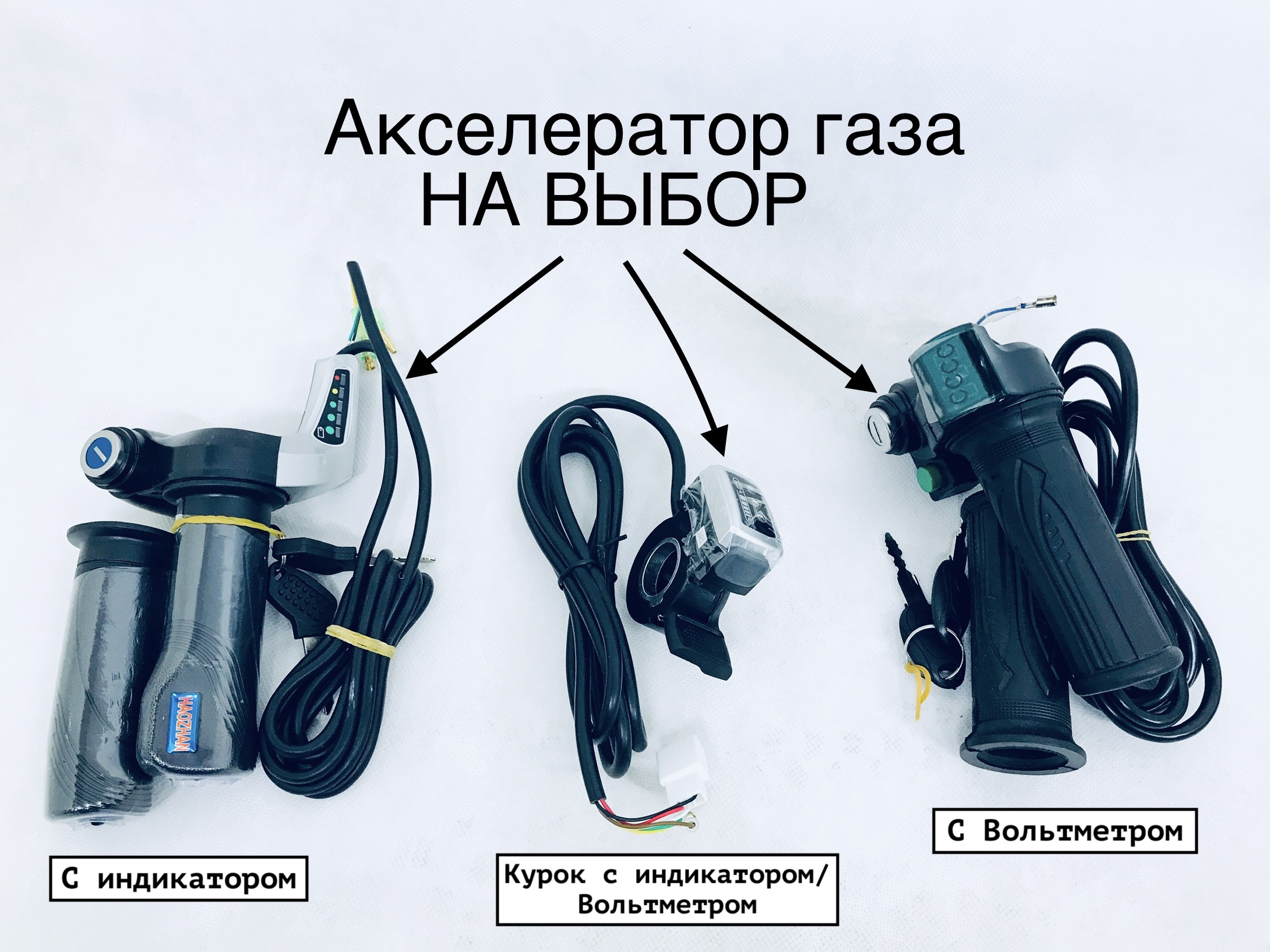 4. Рычаг газа под большой палец Либо ручка мотоциклетного типа с кнопкой/замком включения и выключения контроллера и со шкалой/вольтметром, которая показывает уровень зарядки АКБ;